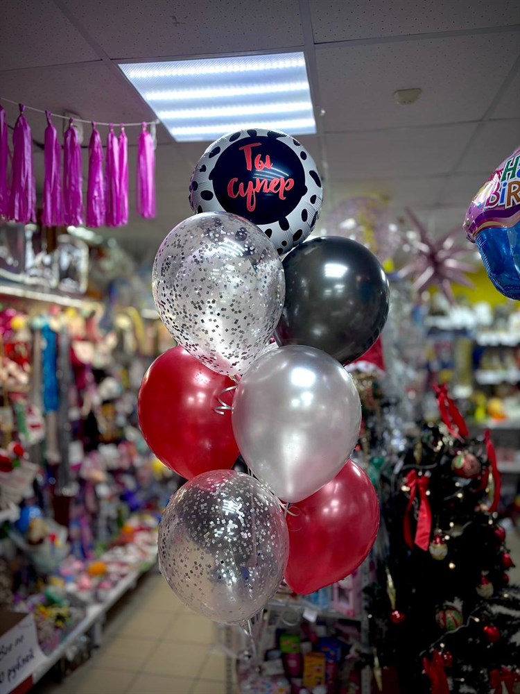Шар перламутр (черный/красный/серебро) — 6 шт.